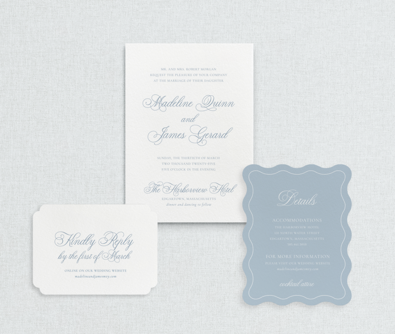 offering the same high-end design style & luxury materials as custom invitations but built from pre-designed